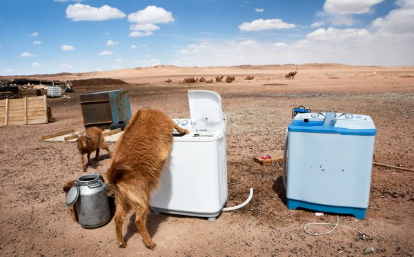 Chiếc máy giặt lạ lẫm xuất hiện trên cánh đồng cỏ.