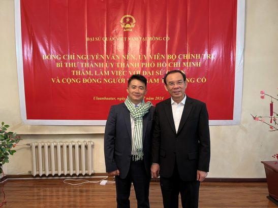 Trong khuôn khổ chuyến thăm, làm việc tại Mông Cổ, đoàn đại biểu cấp cao TPHCM do đồng chí Nguyễn Văn Nên, Ủy viên Bộ Chính trị, Bí thư Thành ủy TPHCM dẫn đầu đã có buổi làm việc tại Đại sứ quán Việt Nam tại Mông Cổ và cộng đồng người Việt tại Mông Cổ.